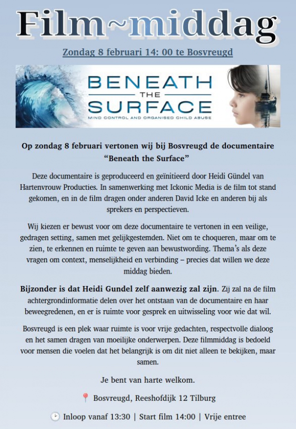| Presentatie Van de documentaire BENEATH THE SURFACE. |